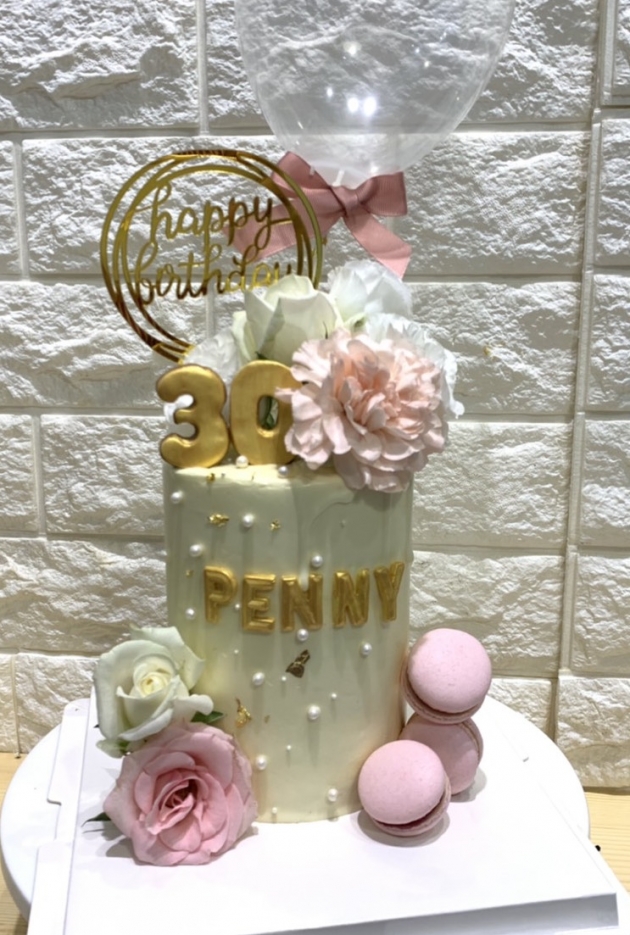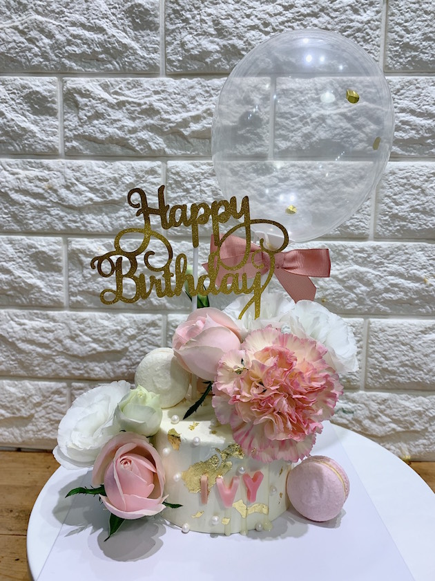 蛋糕上不可食用配件包含:氣球 / 羽毛 / 皇冠
